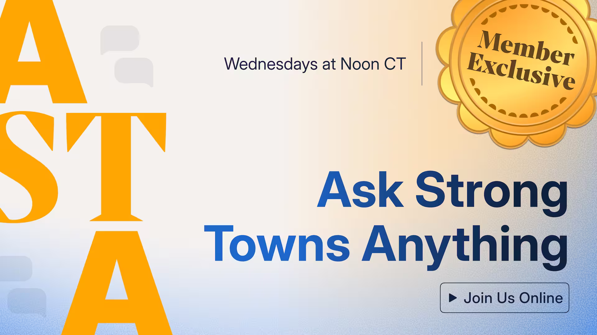 Wednesdays at noon CT, join Strong Towns staffers in a members-only Zoom room where your questions about building resilient cities will be answered. For this edition of ASTA, Strong Towns founder Chuck Marohn will be present.