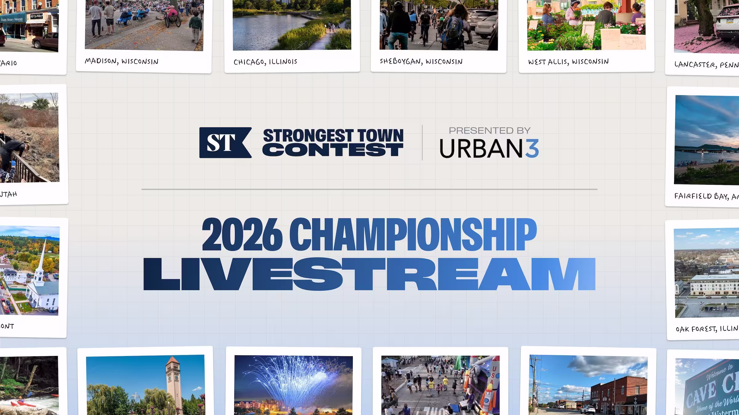 We're nearing the last round of the 2026 Strongest Town Contest, and now it’s your chance to hear directly from the finalists during our Championship Livestream!