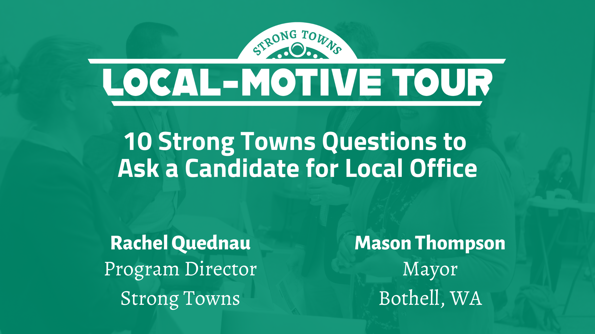 Join us virtually for this stop on the 2022 Strong Towns Local-Motive Tour, featuring Strong Towns Program Director Rachel Quednau and guest speaker Mason Thompson, mayor of Bothell, Washington.
