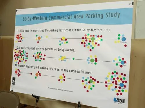 When meeting with neighborhood residents, all planning department products should be presented to residents in a way they can touch and feel. PowerPoint presentations can be used to establish some context for understanding what’s being shown, but the majority of the meeting should be spent in direct interaction with both planners and the subject matter. This means that handouts, easel posters, and pinups should all be considered for use in a meeting.
