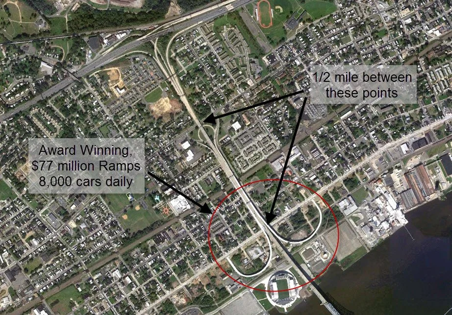 In his 2012 piece “PennDot Fiddles,” Marohn called the $77 million ramps a “very expensive gimmick,” especially given Chester’s demographic data. “These ramps represent an investment of $9,060 for a Chester family of four. For a city with a 12% reported rate of unemployment, how many real jobs could be created if $77 million were put into an economic gardening program? This is an unconscionable expenditure.”