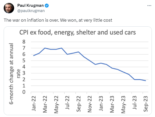 Of course, the past year of inflation gave us moments of true ridiculousness, like this post by Paul Krugman: