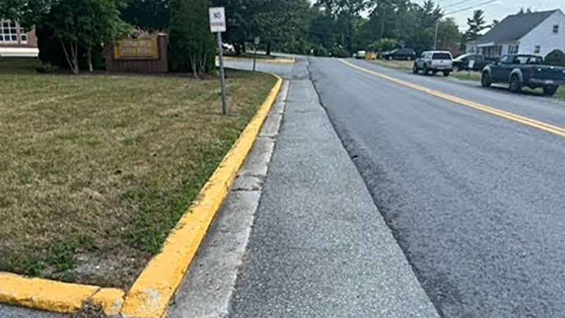 Finally, I would turn the remaining 8 feet of asphalt into a space for people to walk. I recommend that this walking area be located adjacent to the school. This eliminates the conflicts with driveways and is in a location where parking is already prohibited. This new walking area could be delineated with paint, bollards or curbing. These features could be deployed in an afternoon with temporary materials for pennies of the cost of constructing a concrete sidewalk. Over time, as budgets allow, these temporary improvements can be made permanent.
