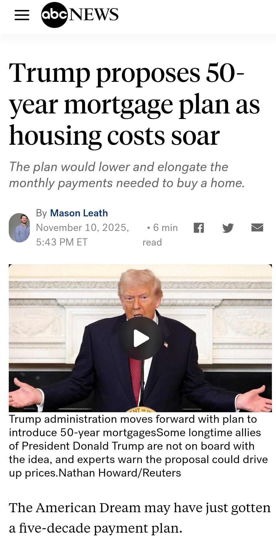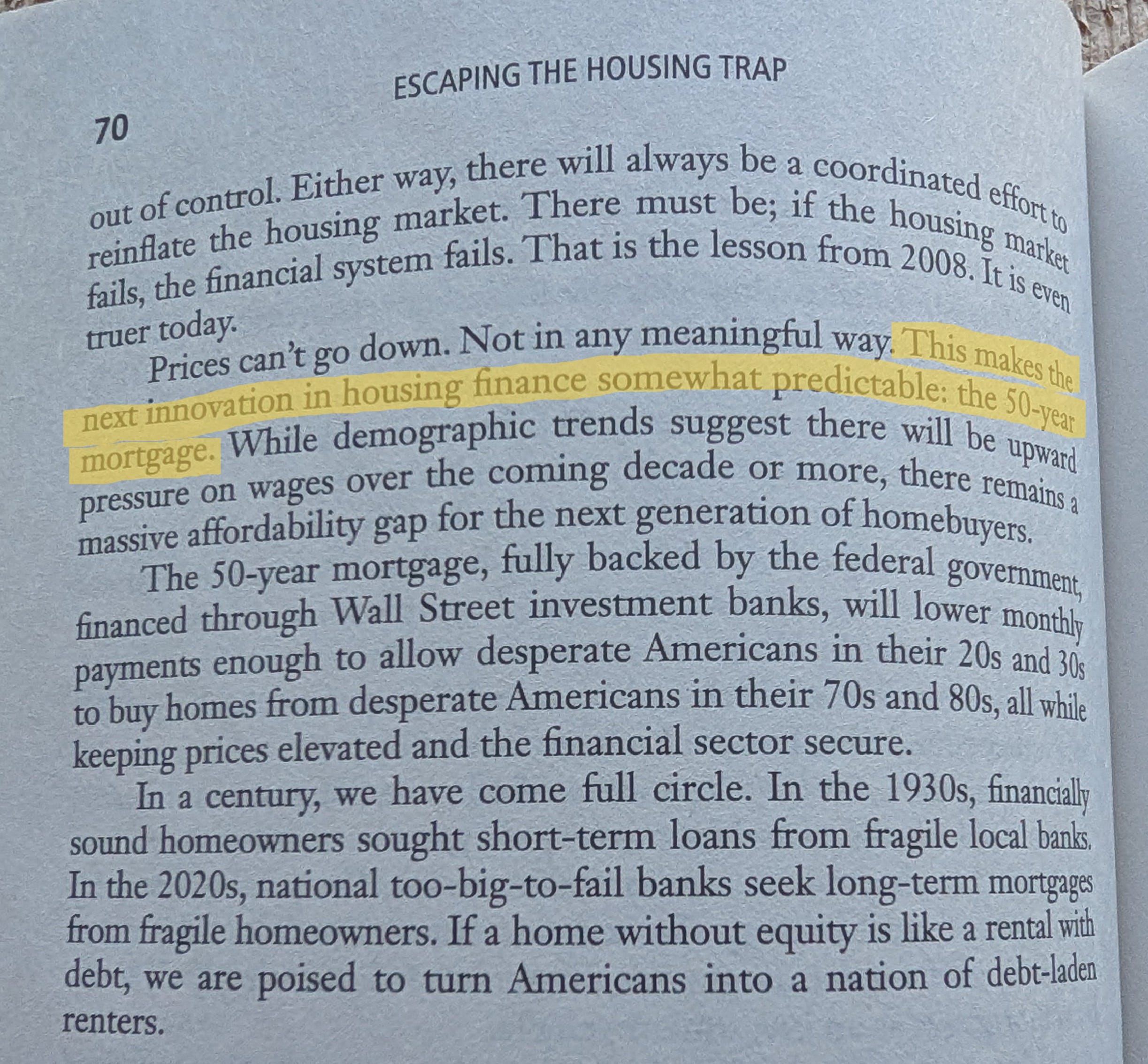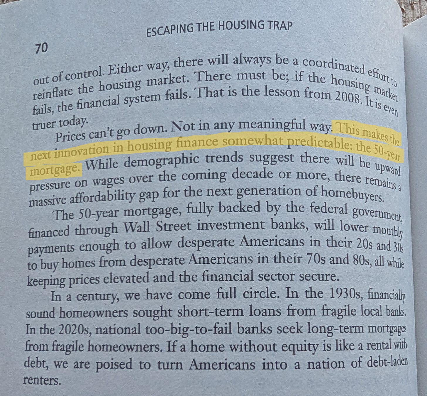 This isn’t innovation. It’s a symptom. When homes are priced beyond what local incomes can sustain, the system stretches the debt instead of fixing the root problem. First 20-year mortgages, then 30-year loans. Now 50. Each one buys time, not stability.