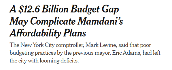 At the end of 2024, New York City reported roughly $155 billion in total assets and $365 billion in total liabilities. By their own numbers, New York City is insolvent to the tune of over $200 billion — an accumulated deficit built up over many years of “balanced” budgets.