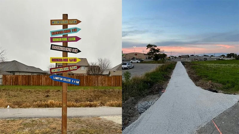 Another way to conduct inexpensive pilot projects is in conjunction with private property owners. For example, the city of Sarnia is working hard at developing a Midtown Trail: a walking and biking path that connects the city from east to west. They haven’t had much time or resources to beautify the trail, so nuSarnia stepped in with their advocacy skills to start making it a place for people to be, instead of just a path. They did this by contacting businesses along the trail route and offering to help develop different spaces — for instance, by creating engaging signage. These conversations helped bring more awareness to the trail and the potential streamlining of revenue for business owners.