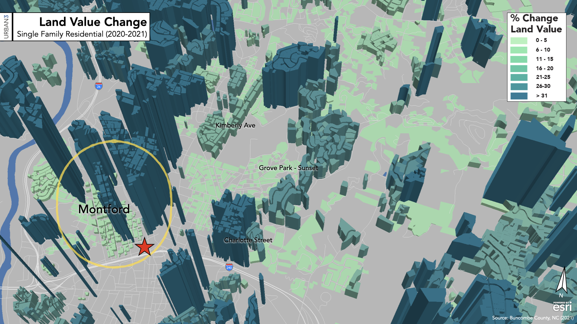 “[One thing] we found in the analysis is that they have these things called neighborhood codes,” said Minicozzi, who found his local neighborhood codes on the Buncombe County GIS Map under the “property card” category. “And the ‘neighborhood codes’ seem a lot like ‘judgment calls’ on the neighborhood. So, it's like, where did the [neighborhood code] map come from?”
