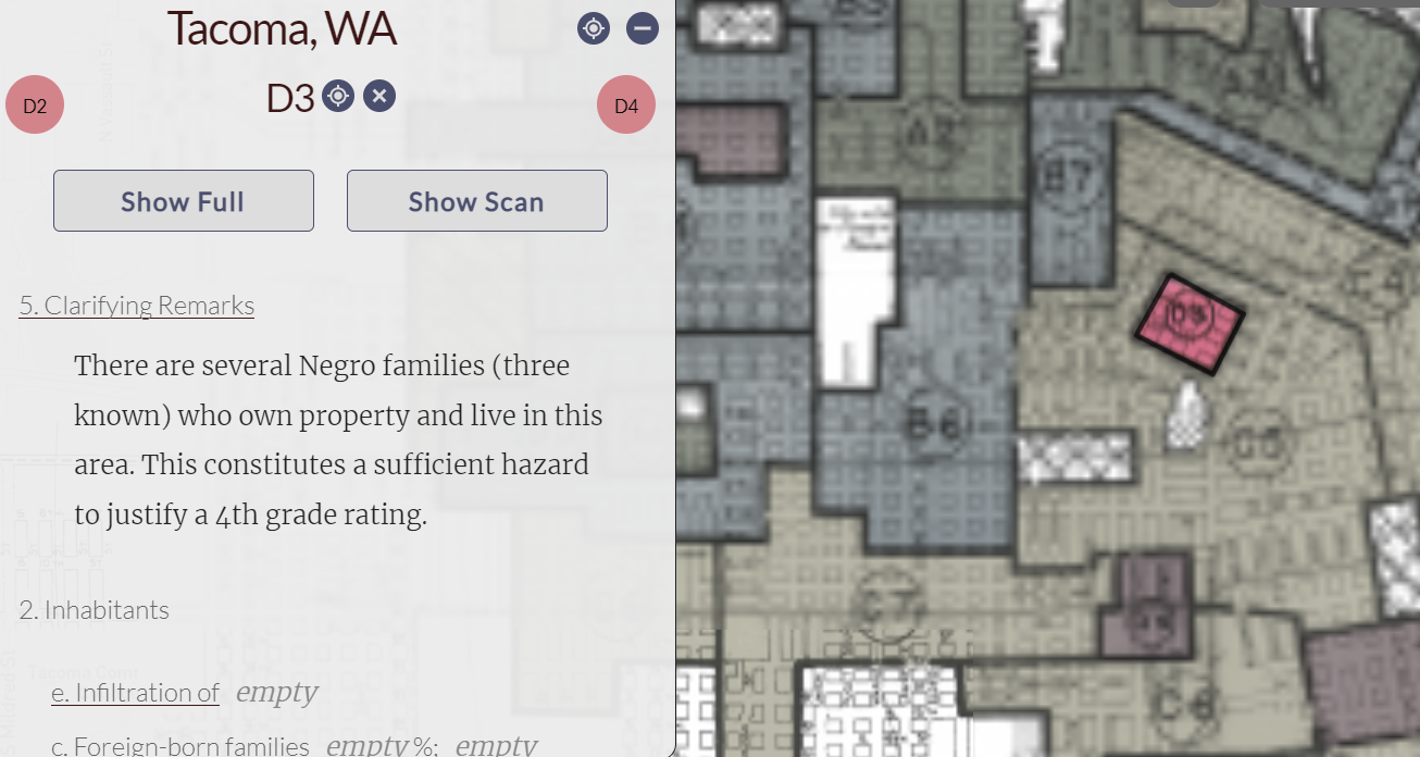 For decades, many banks denied people mortgages because they lived in “redlined” neighborhoods. This prevented people (even creditworthy borrowers) from purchasing a home or getting a loan to renovate their house, and, more often than not, racial and ethnic minorities lived in neighborhoods marked risky for investment. Beginning in the 1930s, appraisers and lenders would communicate neighborhood value through a map and notes (as seen below). With red ink, they would signify neighborhoods least desirable for approving a loan.