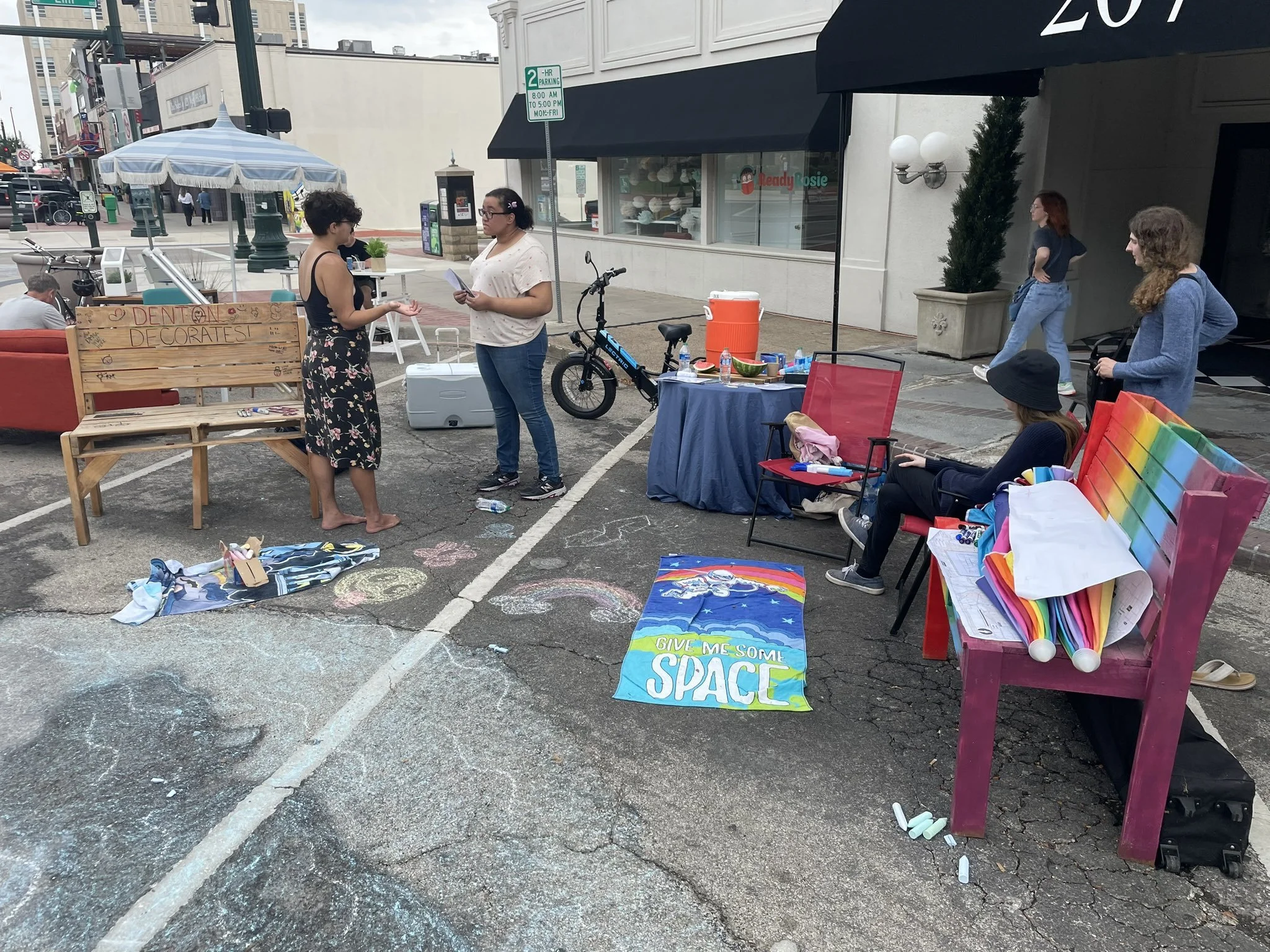 Each year on Parking Day, coveted curbside parking spaces are claimed by couches, games, potted plants, information tables, and conversations about Denton’s future.