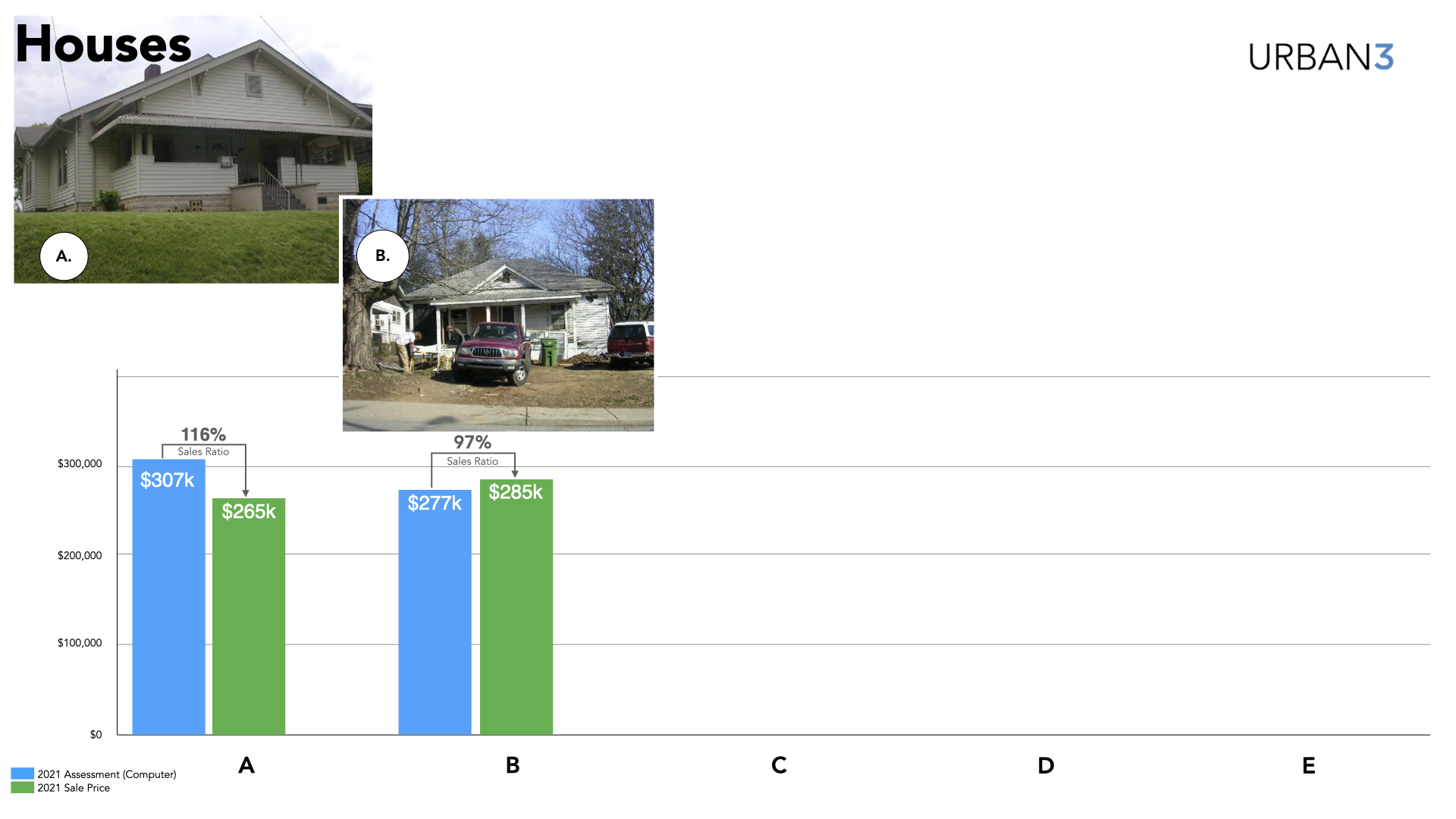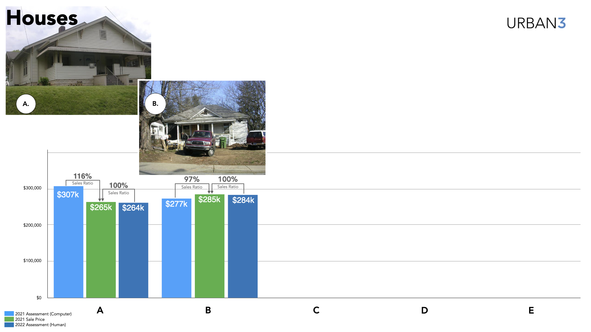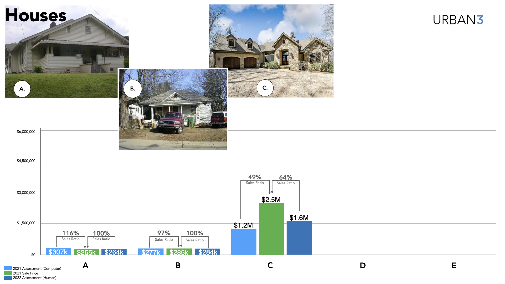 By law, the assessor should have brought the assessment for house C up to $2.5 million in the above graph. The same assessor brought both houses A and B up to 100%—so, why not house C?