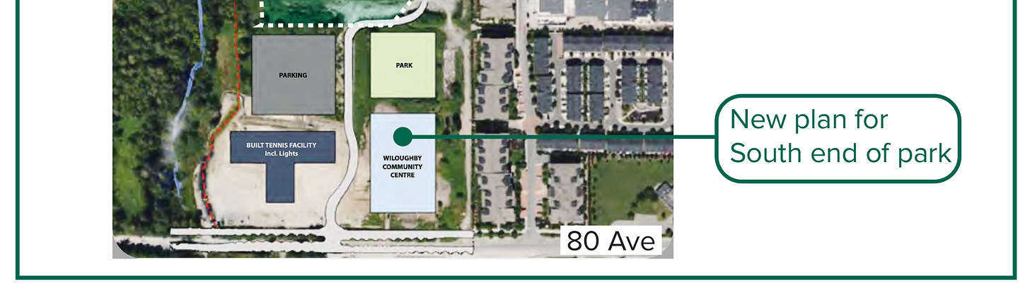 I hope that this reflects a small push toward improving Brookswood’s plans to eventually pare down its planned arterial grid, an approach that Willoughby has shown creates a pedestrian-hostile environment and comes with huge implications and costs.