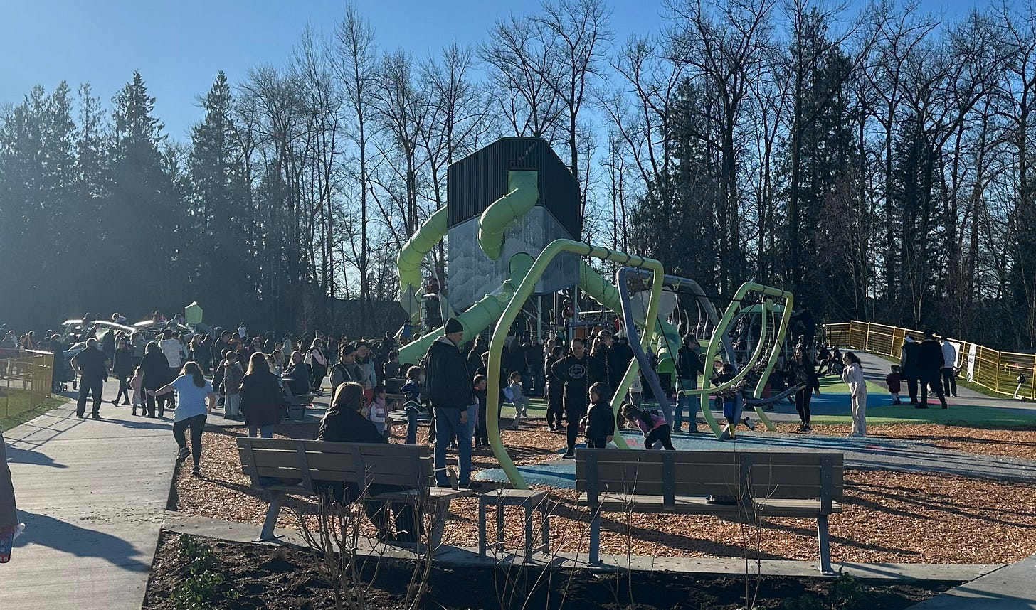 We’ve already seen what happens when something is underbuilt: schools in Yorkson that followed flawed student estimate formulas that need portables from day one. The brand new Yorkson Park Playground, while an excellent community asset, is overrun on the occasional sunny days we have at this time of year.