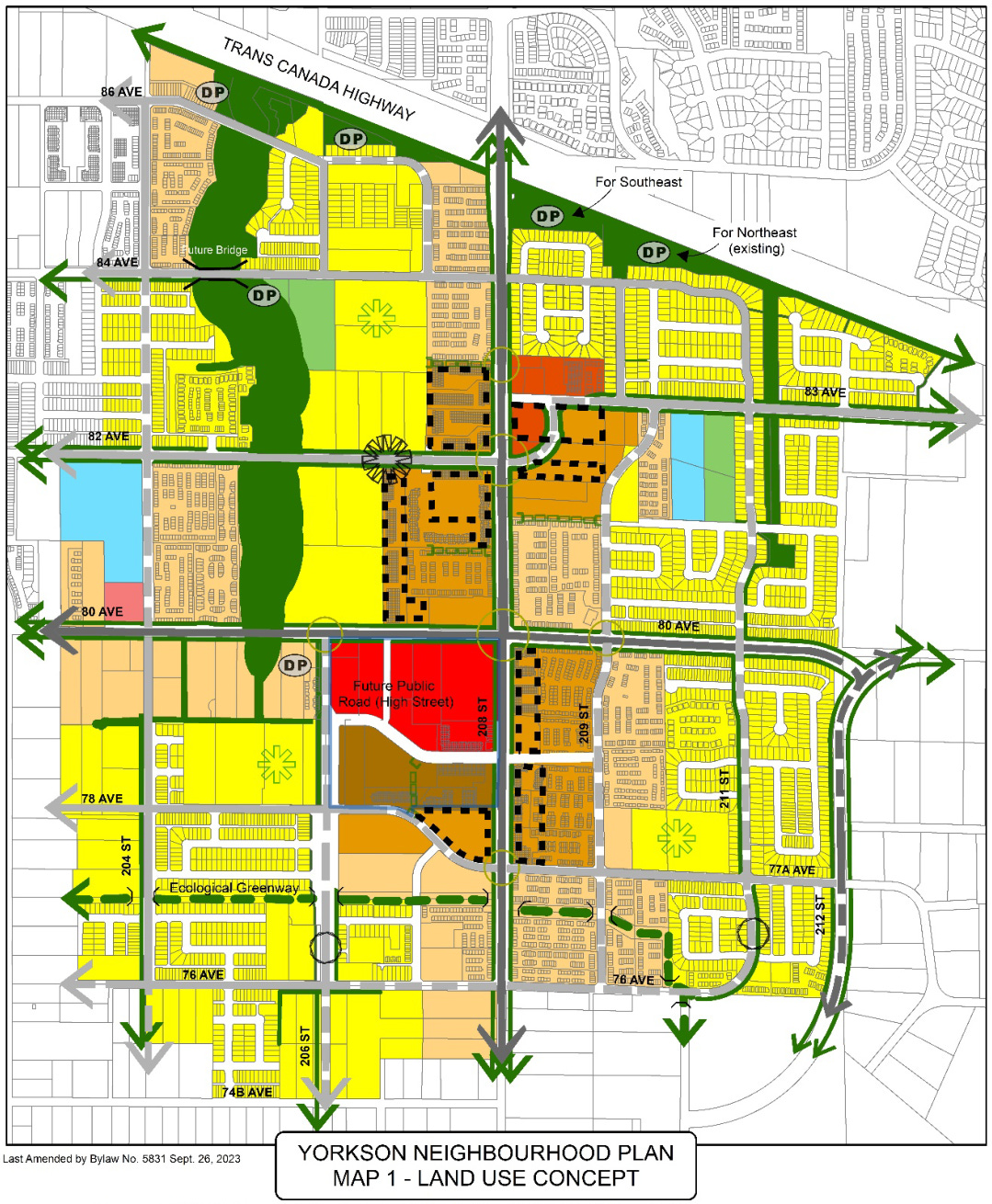 If Yorkson had been designed with a perimeter arterial ring road, with an internal grid of narrow streets, this might not have become such a major issue. Instead, the plan called for a grid of wide arterials.